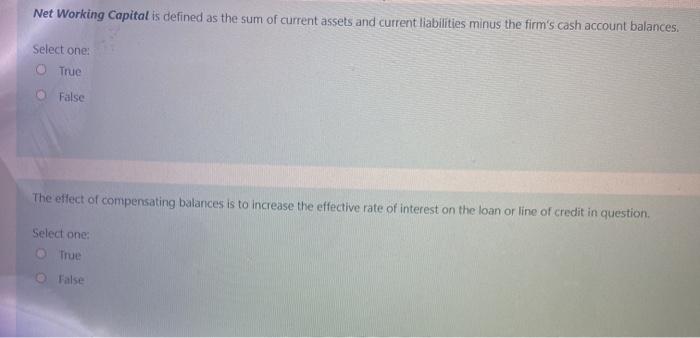 Solved Net Working Capital Is Defined As The Sum Of Current Chegg Com