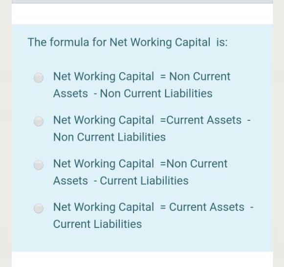 Solved The Formula For Net Working Capital Is Net Working Chegg Com