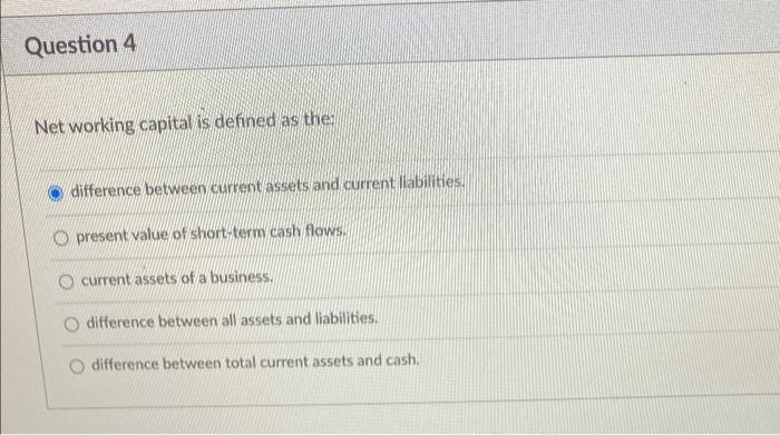 Solved Question 4 Net Working Capital Is Defined As The Chegg Com